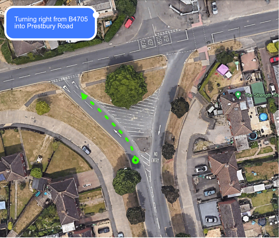 Turning right into Prestbury Road from B4705